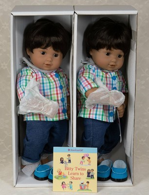 American Girl Bitty Twins Dolls Boy And Girl Set Brown Hair And Eyes New In Box Ebay